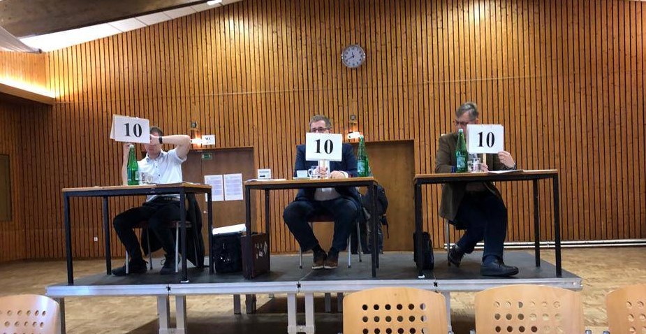 Als Pflichtstück gaben wir die „Reverie“ von Armin Kofler zum Besten, mit sicherer Hand geführt durch unseren Kapellmeister Wolfgang Jakesch. Mittlerweile bei uns fast üblich, wurde danach der Dirigent getauscht und Kapellmeister-Stv. Jakobus Weichinger navigierte uns gewohnt souverän durch die schwungvollen Fahrwasser des Selbstwahlstückes „Klezmer Karnival“ von Philipp Sparke.