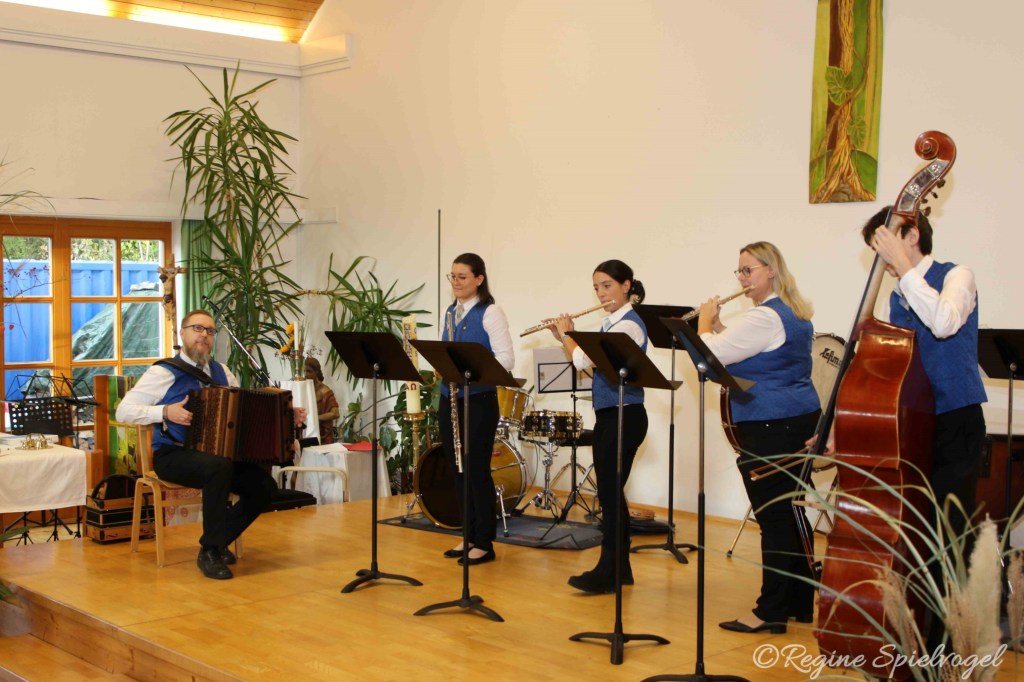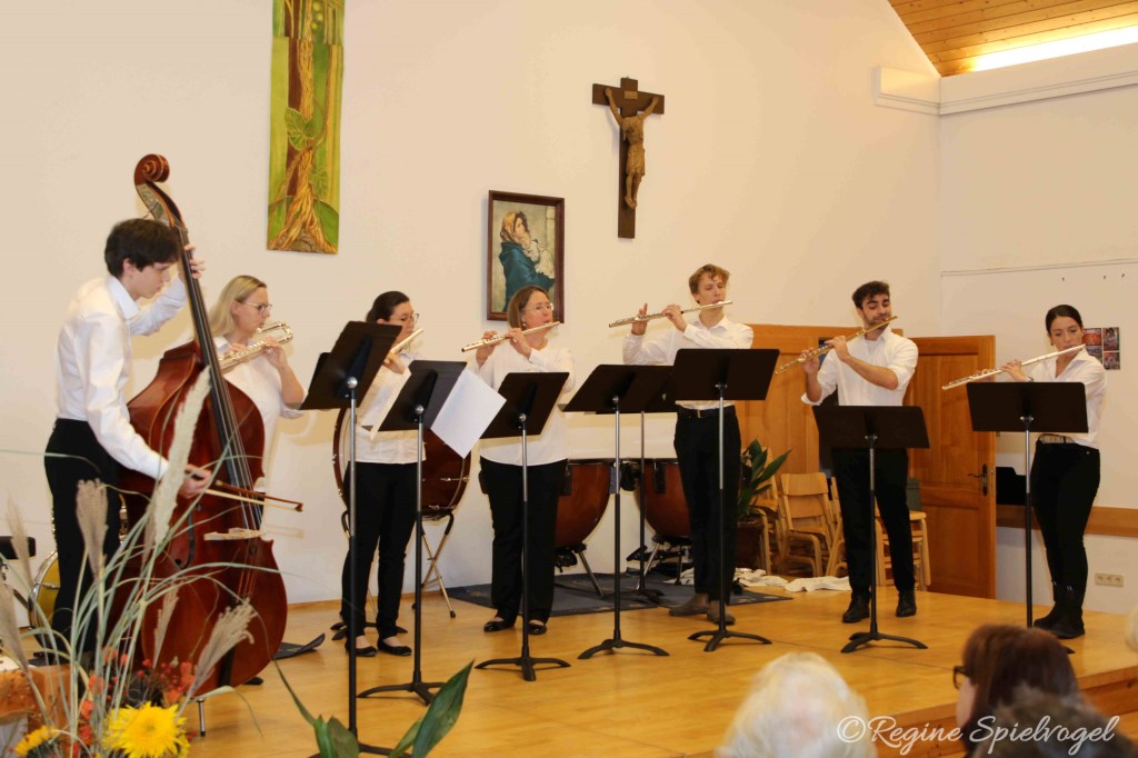 Trotz herbstlicher Temperaturen füllte sich der Saal schnell und kam mit gut 200 Besucher:innen an seine Kapazitätsgrenzen. Die Musiker:innen präsentierten ein abwechslungsreiches Programm aus verschiedenen Stilrichtungen, welches dem namensgebenden bunten „Gemischten Satz“ alle Ehre machte: Neben klassichen Bläserklängen, traditioneller Volksmusik, eigens ausgeborgten seltenen Flöten und feurigen Tango-Rhythmen konnte das Publikum auch dieses Jahr einem Gesangsensemble lauschen.